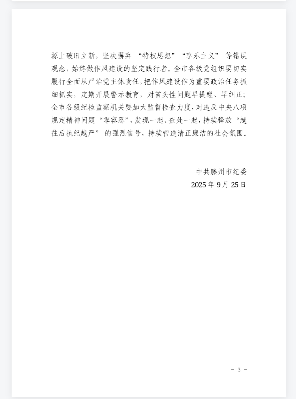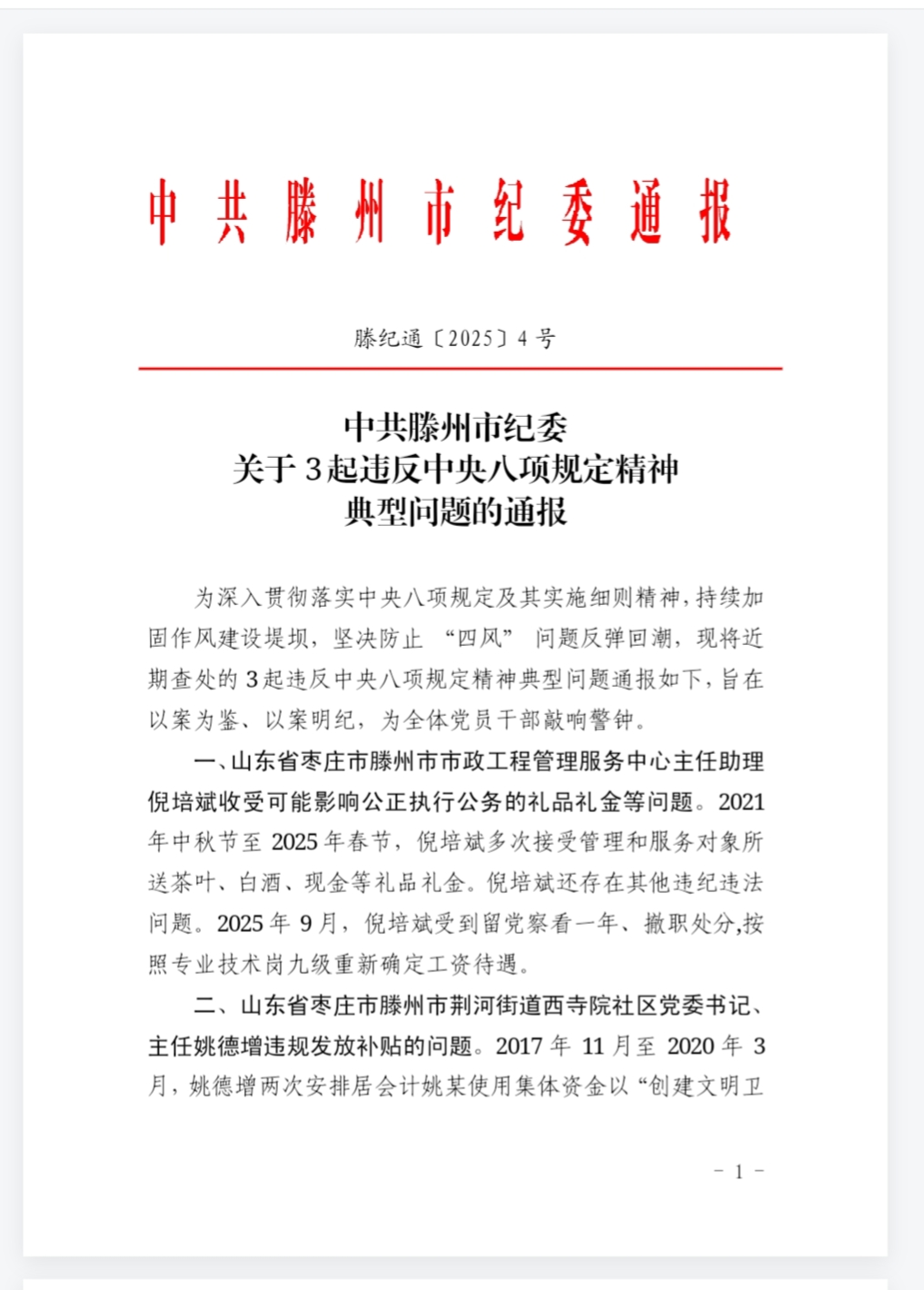 中共滕州市紀(jì)委通報(bào) 滕紀(jì)通〔2025〕4 號(hào)